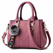 Embroidery Messenger Bags Women Leather Handbags Bags for Women Sac a Main Ladies hair ball Hand Bag